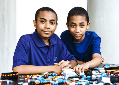 To test the new smart Legos, we enlisted the help of two extraordinary young men: Carson Huey-You, 14, who graduated from Texas Christian University this past May with a degree in physics, and his brother, Cannan, 11, who graduated from high school the same month. So, once again: Carson graduated college at 14, Cannan graduated high school at 11.
